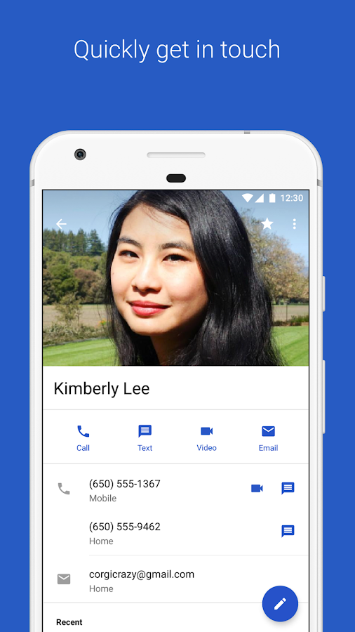 • Action buttons in the contact make it easier to call, text, and more