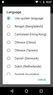 (Bangladesh), Bangla (India), Cantonese (Hong Kong), Czech, Danish,