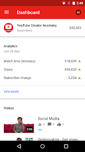 your YouTube channels on the go. Check out your latest stats, respond to